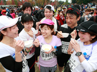 ご当地グルメとして全国的に注目を集めている「まつや とり野菜みそ」を使用した“もてなし鍋”を、ゴール後のランナー全員にふるまいます。“カニ入りつみれ”と“金沢ネギ”を具材とし、あったか鍋で冷えた体と疲れを癒していただきます。⑦ コース沿道で切れ目ない応援パフォーマンスを展開