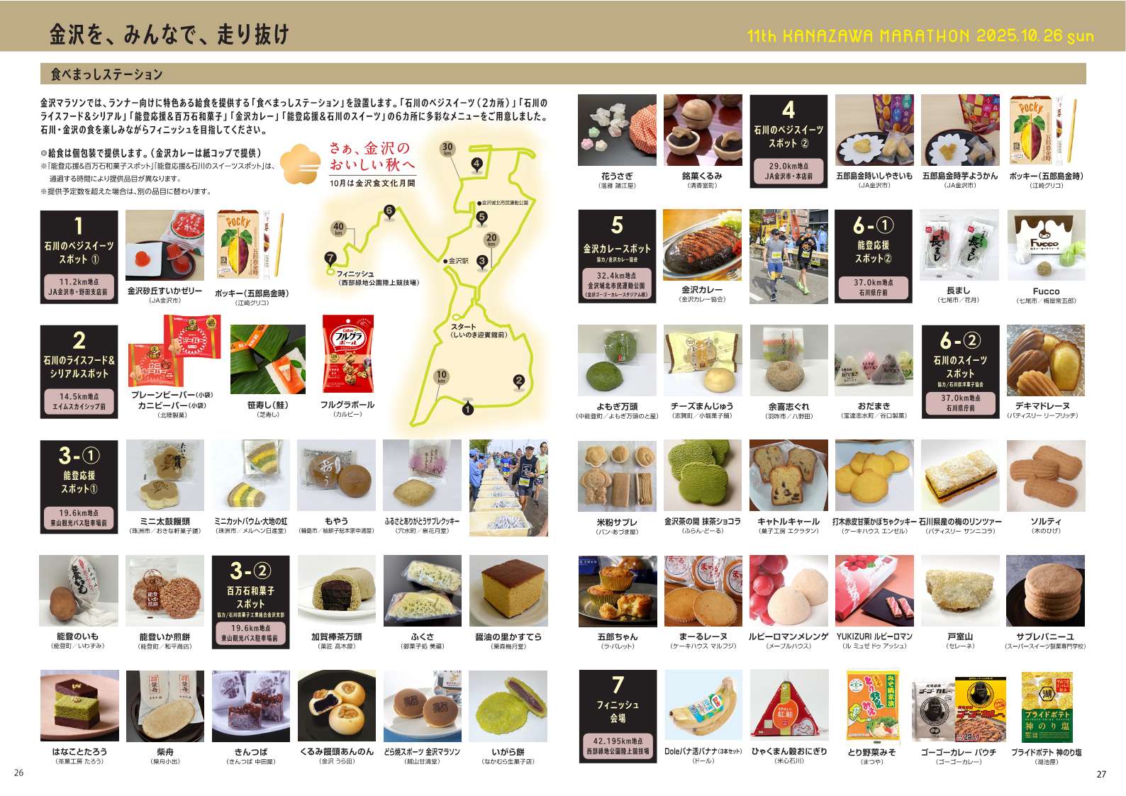 石川・金沢らしい多彩なメニューに加え、今回は能登の特産品のスポットを2か所に増やしてランナーの皆さまをお迎えしますのでお楽しみに!