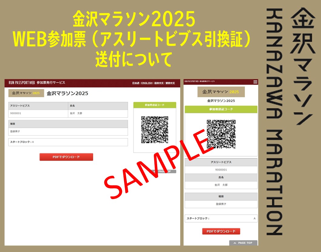 本日10月2日(木)、参加ランナーの皆さまへ「WEB参加票」をメールにて配信いたします。10月24日(金)~25日(土)のランナー受付時に必要となりますので、「参加者認証QRコードの表示画面」もしくは「PDFを出力した用紙」のいずれかを必ずご持参ください。