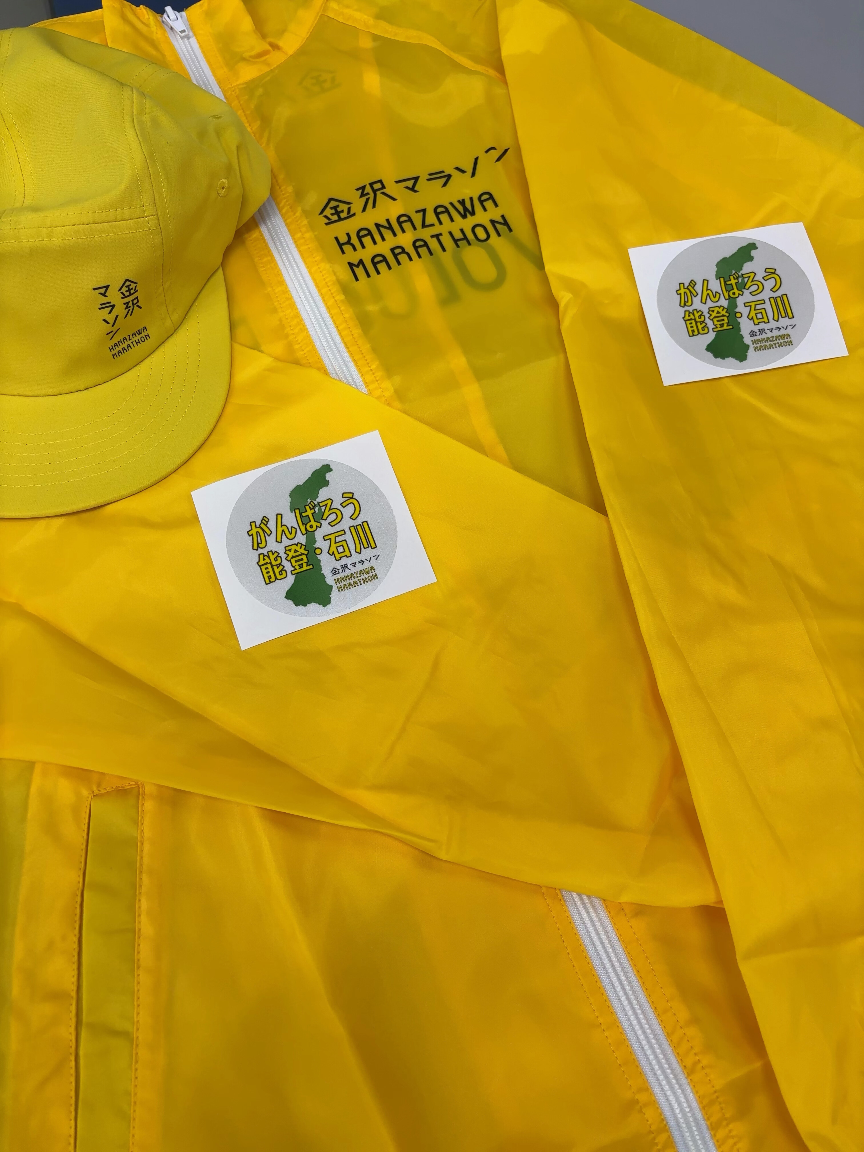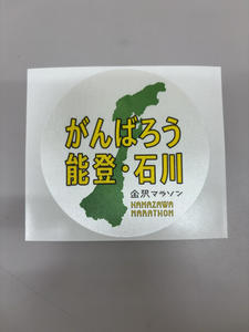 能登復興応援として、ランナーとボランティアに「がんばろう能登・石川」シールを配布します。