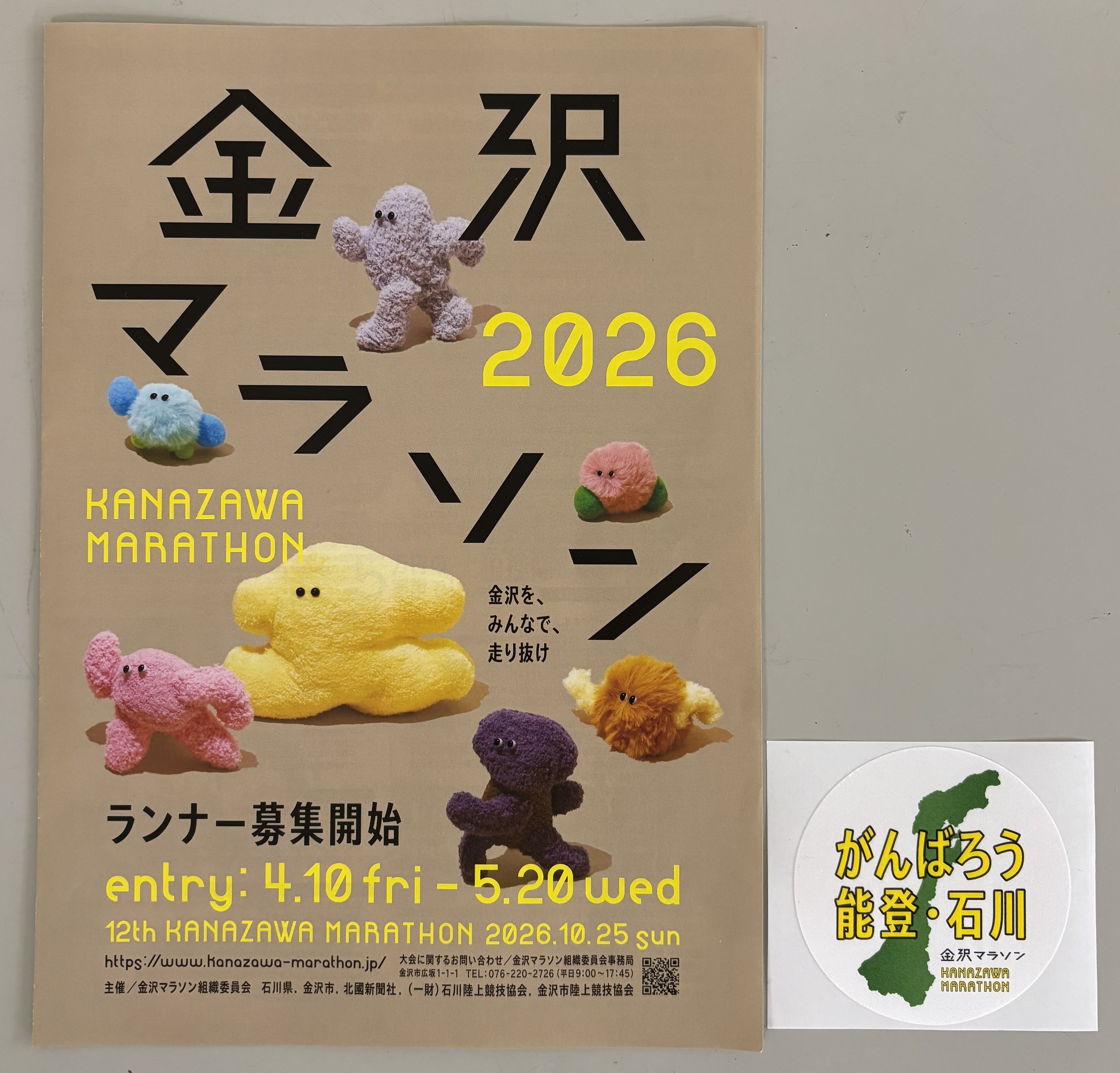 金沢マラソンの募集要項[4月10日(金)から一般エントリー開始]や、Tシャツなどに貼ることができる「がんばろう能登・石川」シールを配布しておりますので、ぜひお立ち寄りください!