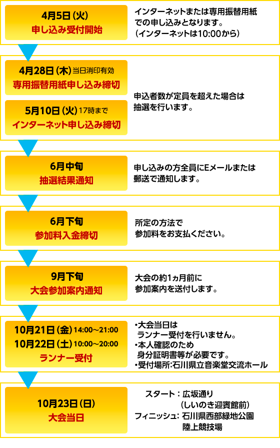 - ※大会当日[10月23日(日)]の受付は行いません。