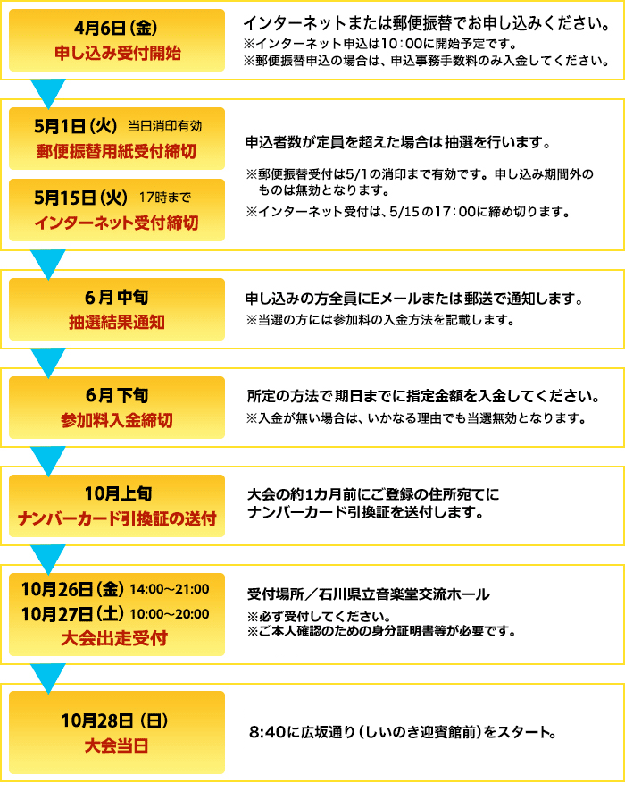 金沢マラソン2015~2017の3大会で連続落選された方を対象に、定員300人で優先的に抽選します。
