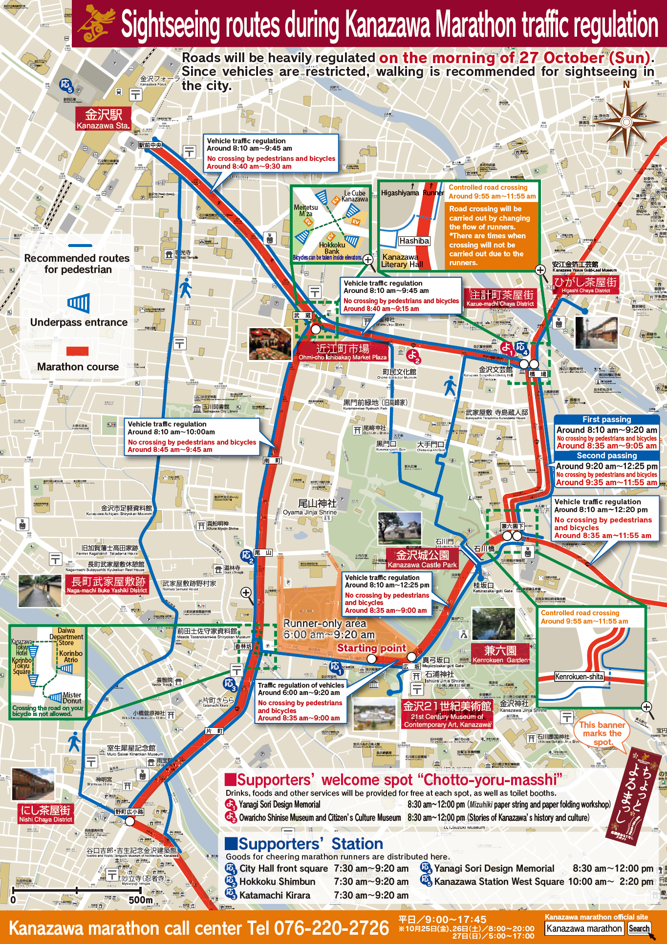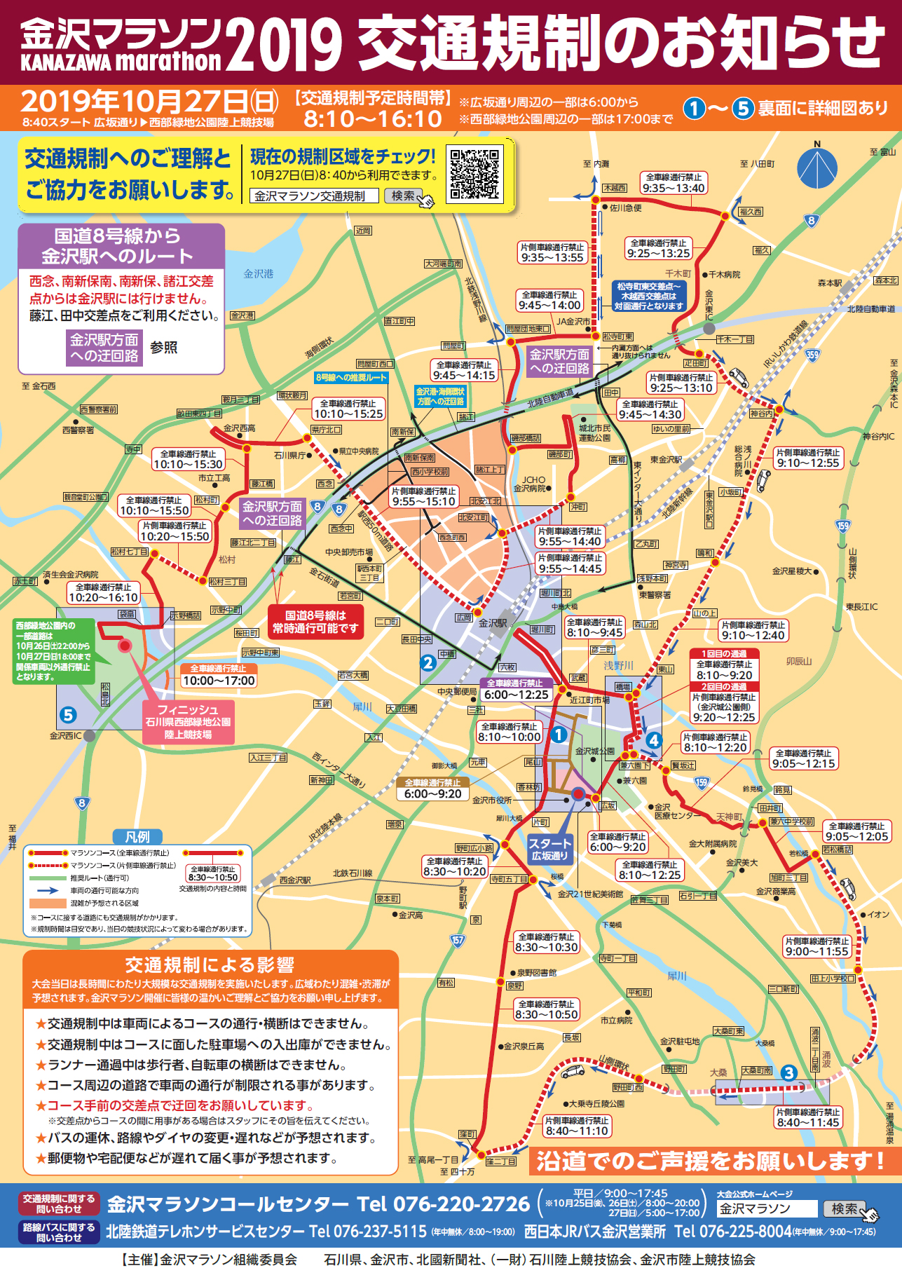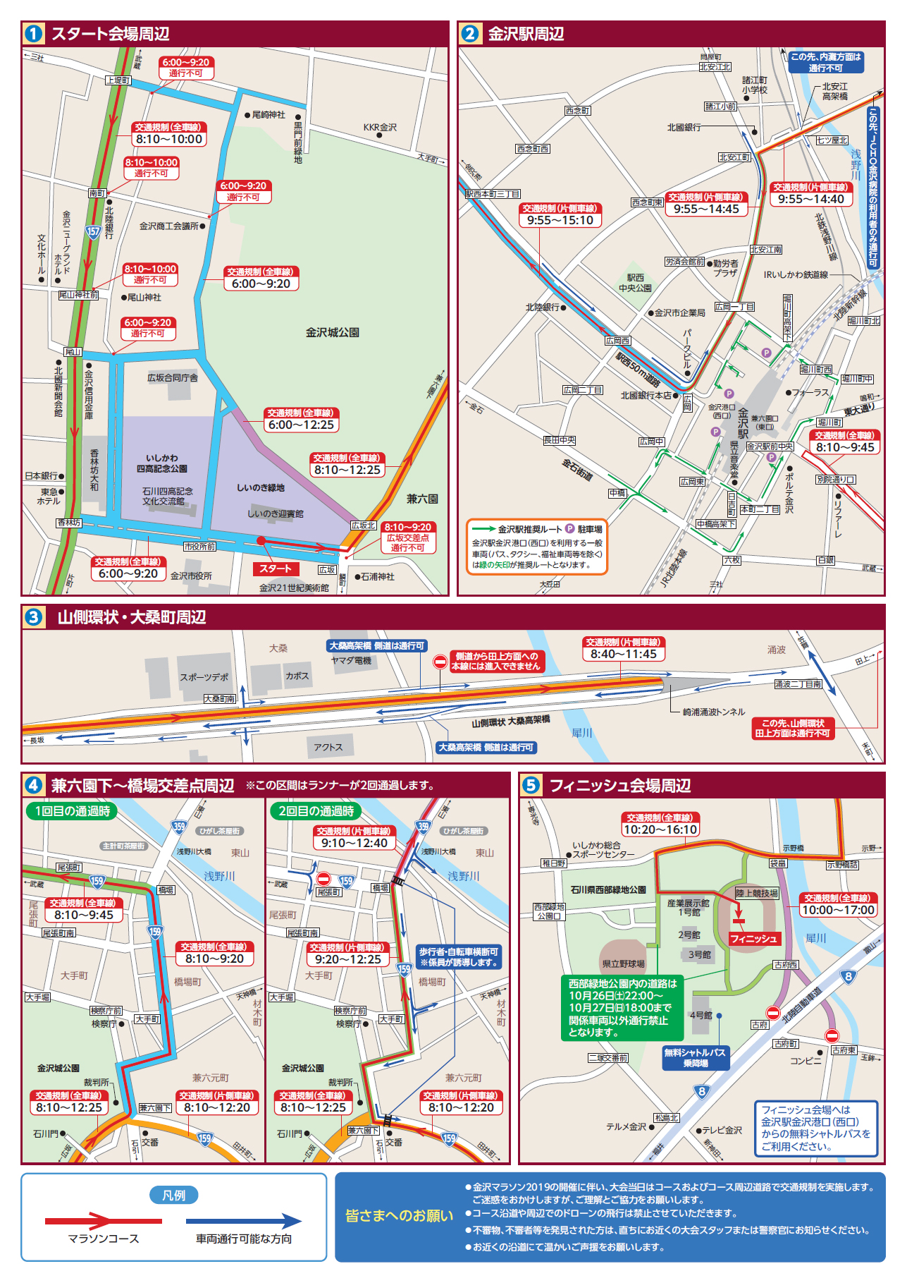 2019年10月27日(日)は「金沢マラソン2019」の開催に伴い、長時間にわたり大規模な交通規制を行いますので、 金沢市内全域で大規模な交通渋滞が予想されます。