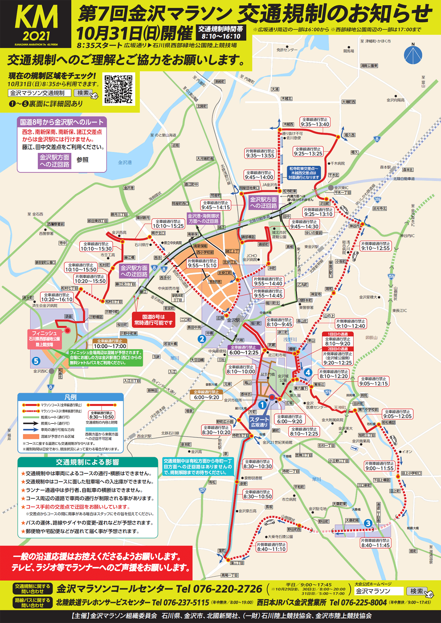 「金沢マラソン2021」の開催に伴い、10月31日(日)は金沢市内全域で大規模な交通規制を実施いたします。