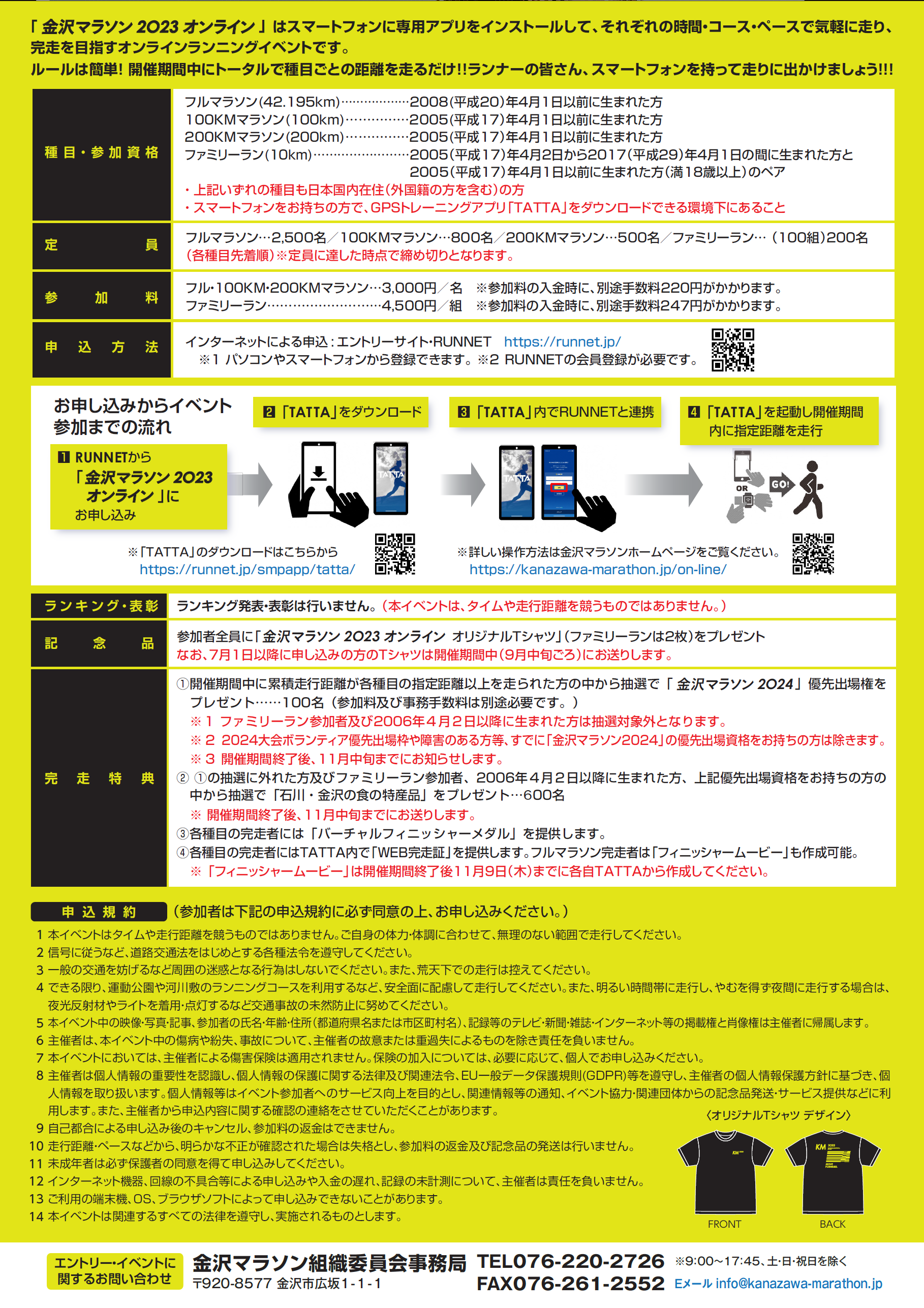 参加者全員に「金沢マラソン2023オンライン オリジナルTシャツ」をプレゼント