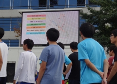 大型ビジョンで金沢マラソンを紹介(全州市)