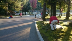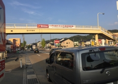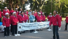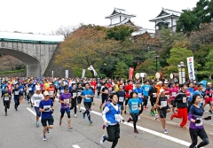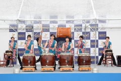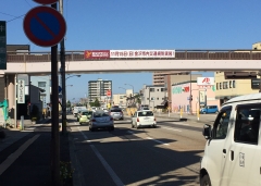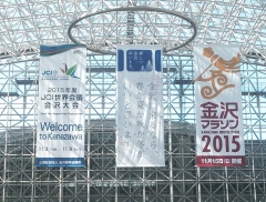 金沢駅のシンボルでもある鼓門をモチーフに制作。鉄地の表面に漆を焼き付け、金沢の街を疾走するマラソンランナーの風を色とりどりの金沢箔で表現。