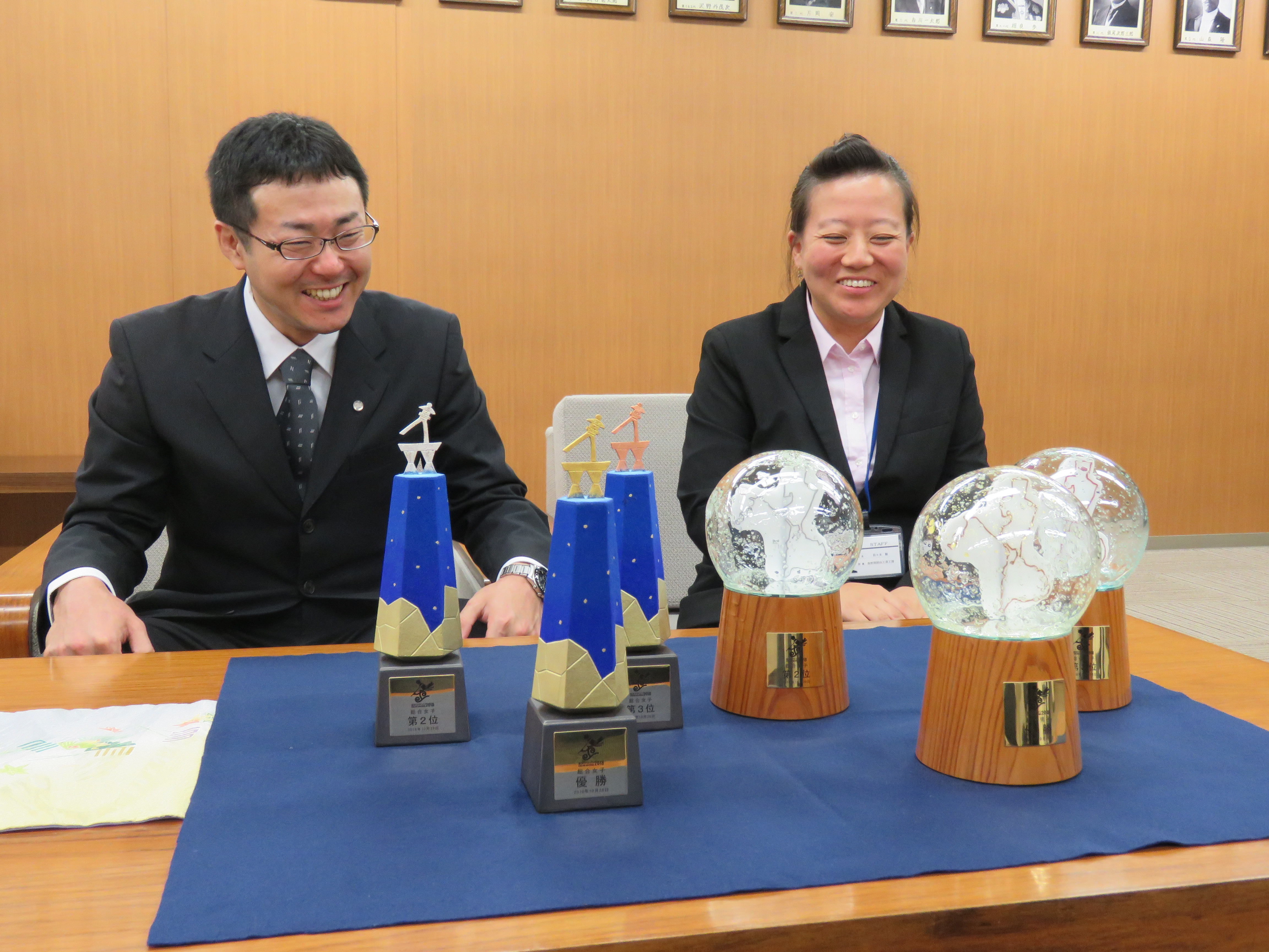 総合男女1位〜3位の方に贈呈する入賞トロフィーが完成し、本日11日、金沢市役所で発表会を開きました。